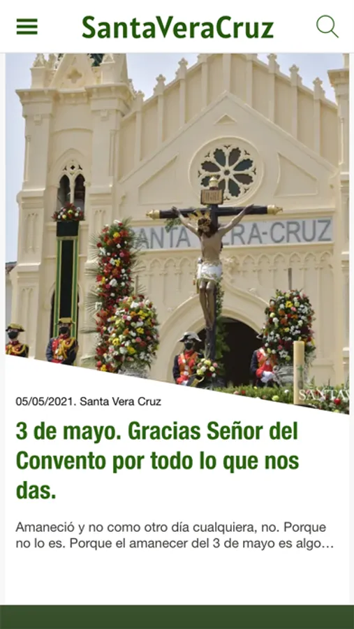 Actualidad, noticias de interés, historia y hemeroteca, información sobre el Día de la Cruz y la Semana Santa, mapas e itinerarios de procesión de la Real, Muy Antigua, Ilustre y Venerable Cofradía Franciscana del Santo Cristo de la Vera Cruz, María Santísima de la Soledad y del Santo Sepulcro de Alhaurín el Grande (Málaga) en esta aplicación móvil. Los verdes de Alhaurín el Grande.