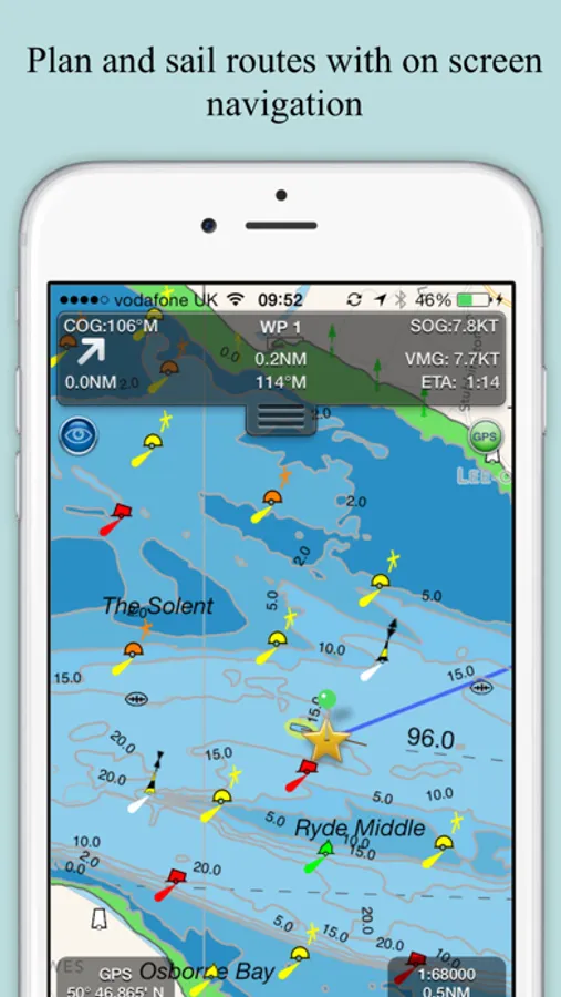 In-app tools let you measure distances and bearings and record waypoints on routes to sail. When you are out at sea, the app’s Sailing HUD shows your position on the route, Course over ground (COG), Speed over ground (SOG), Vector Made Good (VMG), Estimated Time of Arrival (ETA), Distance and bearing to next Waypoint. Waypoint reached alerts, auto-routing to the next waypoint and flashing collision alerts (with AIS).