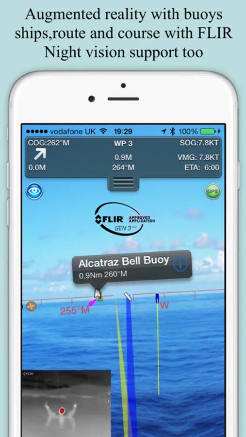 Unique AR view mode (IAP) allows you to view buoys, lights, ships, waypoints, route and track overlaid on your iPhone or iPad live camera view. With "AR LockOn" you can select a target on the chart and then be guided to it in the AR camera view. You can also see at night and in the fog with the FLIRONE Infra-red camera.