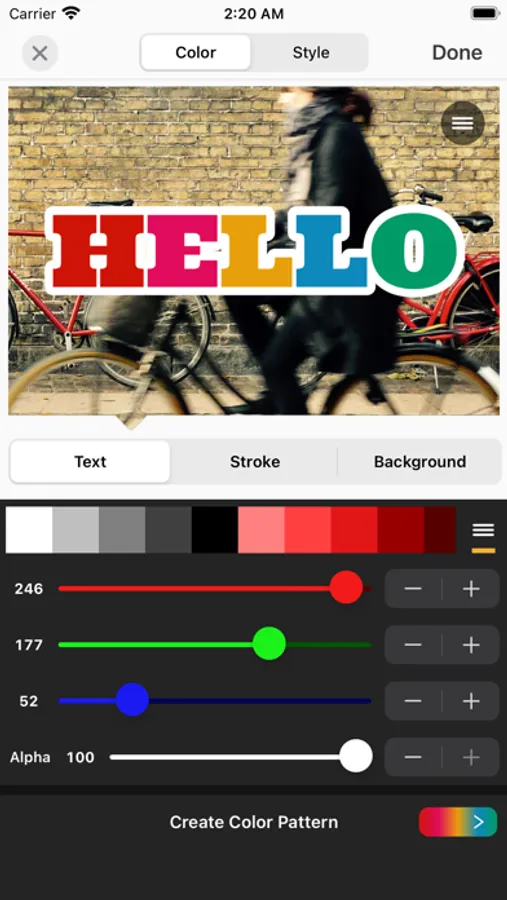 ・ Text's stroke color is changeable.