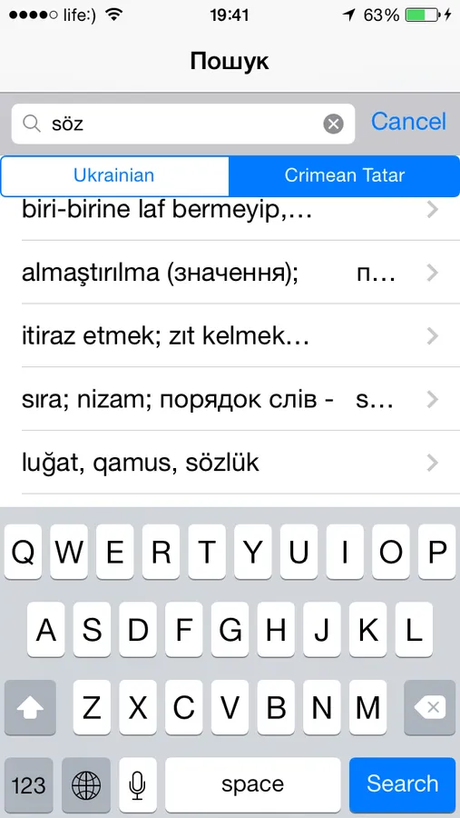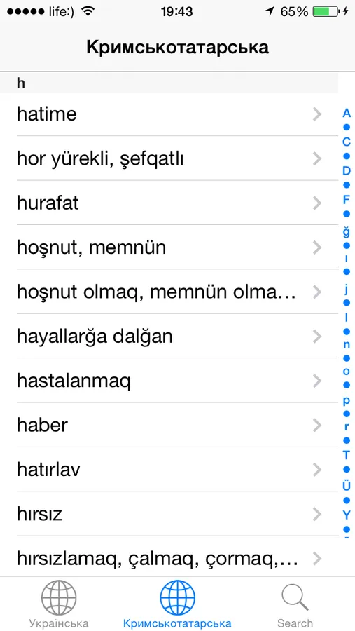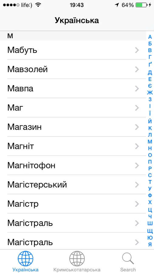 This is the first Ukrainian - Crimean Tatar dictionary for iOS that contains about 10,000 words.