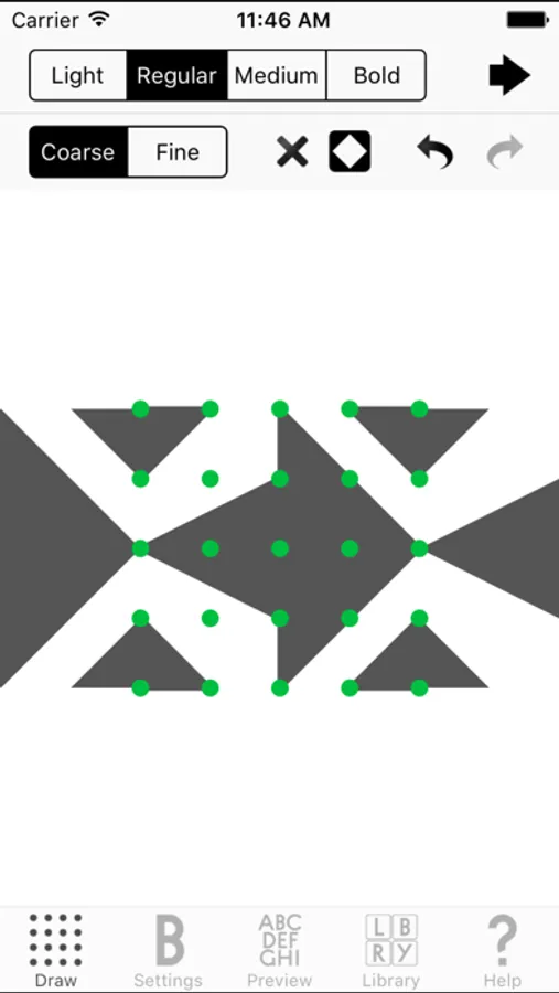 The Pattern Type App allows you to design patterns and generate typefaces composed out of these patterns. You can choose between weights, draw patterns and preview the generated letters, share or save your designs etc... The results are geometrical, caps only typefaces. Design is made simple with the graphical user interface. Download the result and use it to give your documents a very personal note.