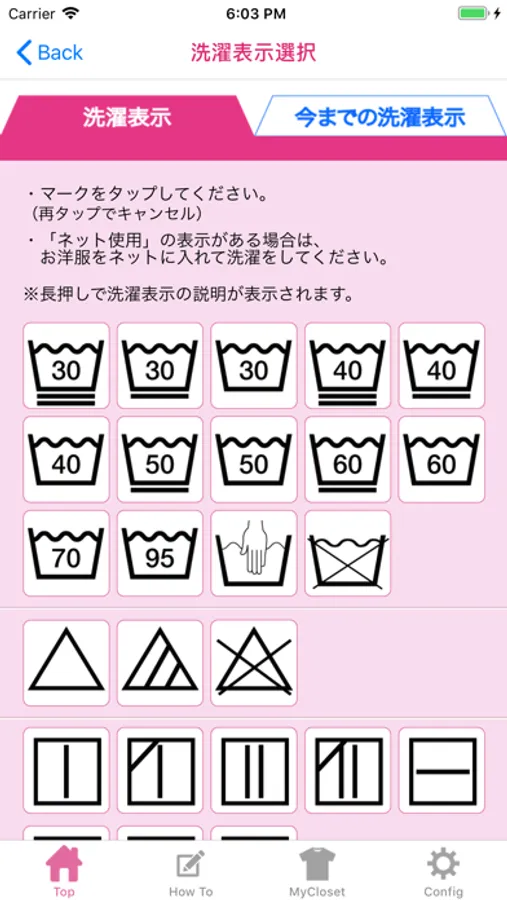 ・お洋服の洗濯表示を選択すると