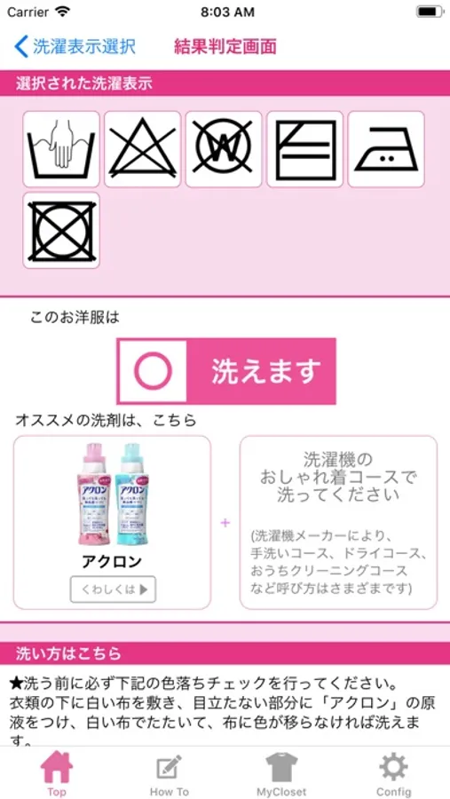 お家で洗えるか確認できます。