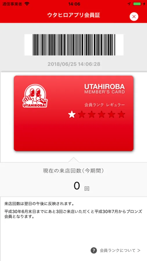 (2)機種変更後、新たに「ウタヒロ」アプリをダウンロードしていただき、上記(1)のログイン情報でログインしていただくと来店ポイントなどの会員情報が引き継がれます。