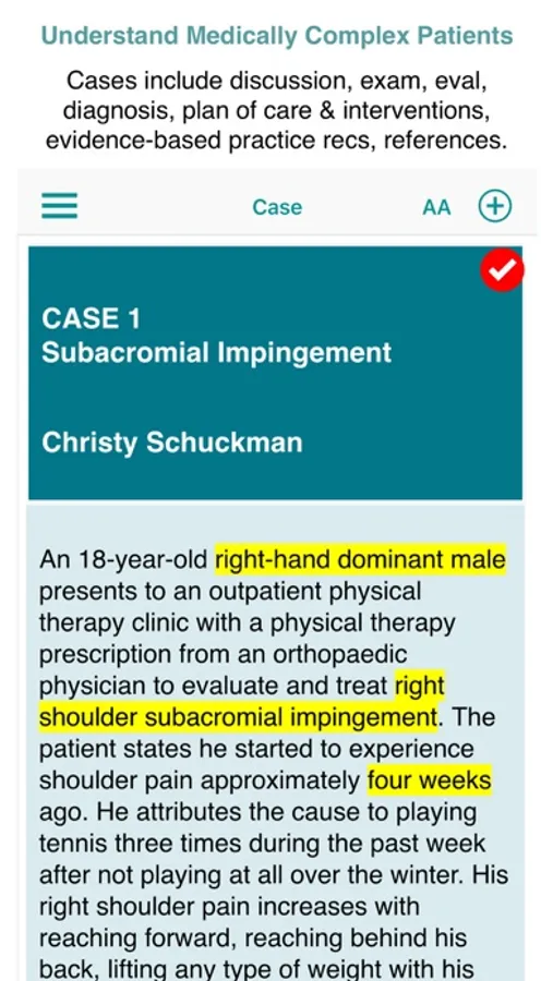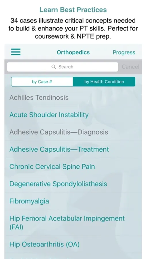 The free version includes 1 sample case from the Physical Therapy Case Files: Orthopaedics app. The complete app is available as an in-app purchase for $49.99.
