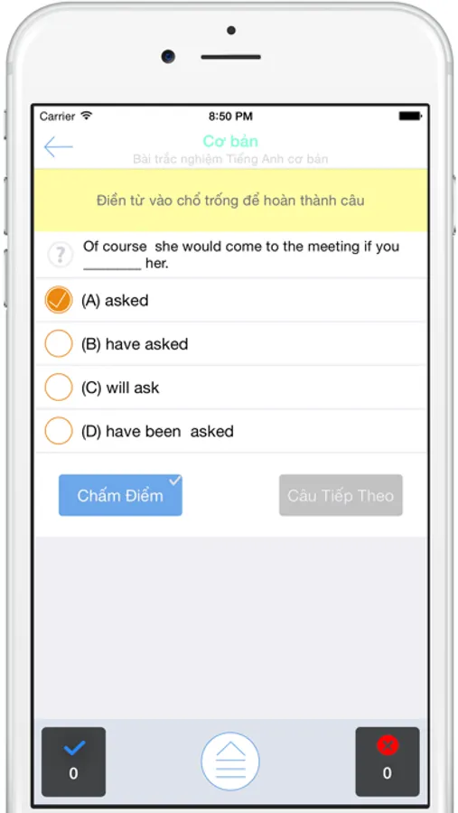 Hãy thử ứng dụng làm bài tập trắc nghiệm Tiếng Anh tuyệt vời của chúng tôi và cho chúng tôi biết ý kiến của bạn :)
