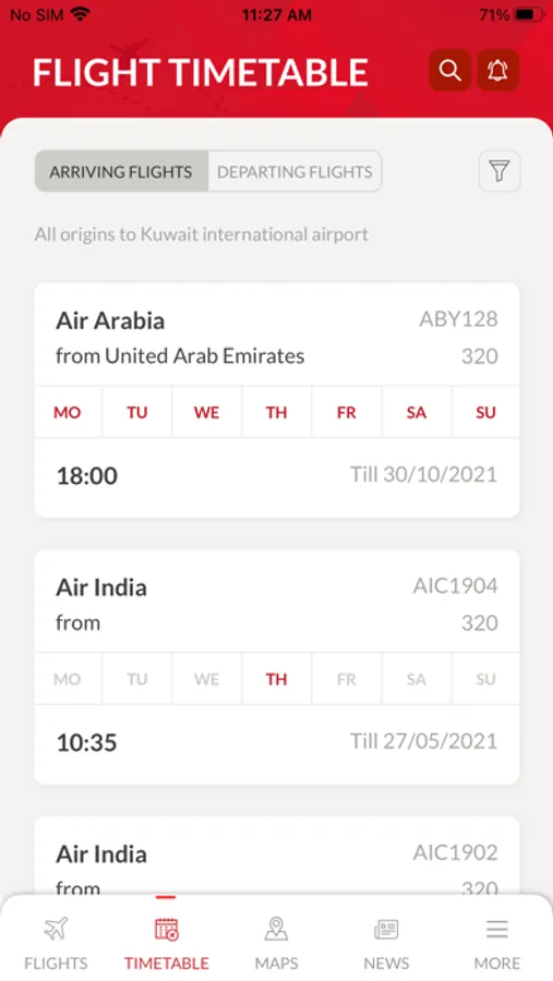 Kuwait International Airport (KWI) official application. This app provides complete information for Kuwait International Airport (KWI) including arrivals, departures, terminal map, directions to and from the airport and more.
