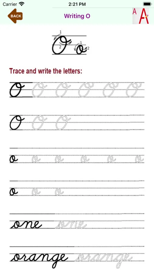 Once you can read or recognise the letter, there are two additional functions that show how the characters are written. One function will display the strokes to write the letter and the other function will show the strokes to do cursive writing.