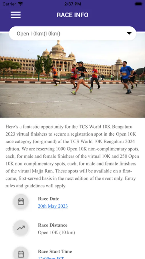 TCS World 10K Bengaluru Virtual 2023 Mobile Application, Powered by Tata Consultancy Services, includes a wide range of features that provide runners and spectators with important information relating to the event. Watch the running routes using route maps. An adaptive and dynamic UI makes sure you have all the information you need right at the start of the app. You can get answers to the questions you may have about the race. It is a perfect mobile companion to have a more immersive and enjoyable experience