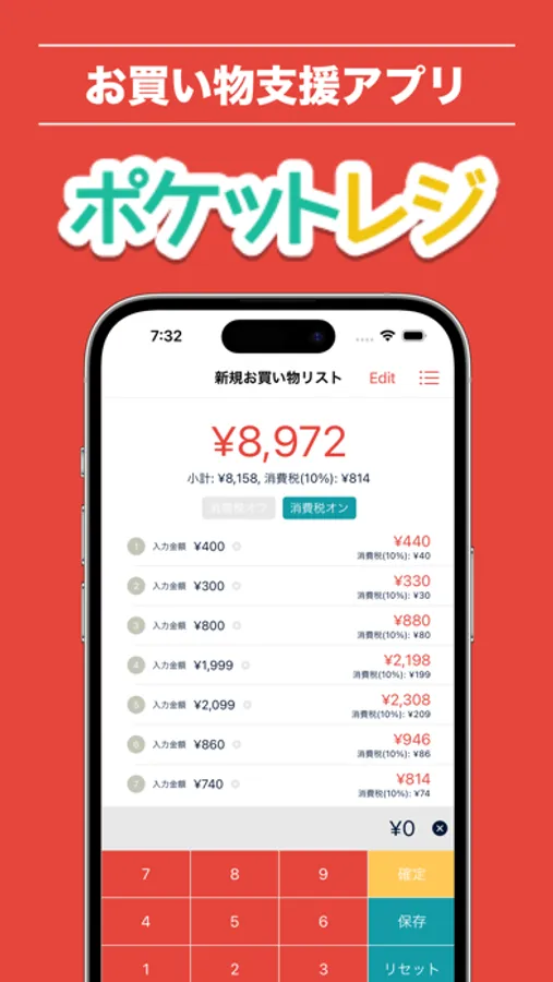 お買い物のお供に超絶便利な、お買い物支援電卓アプリ「ポケットレジ」が登場!