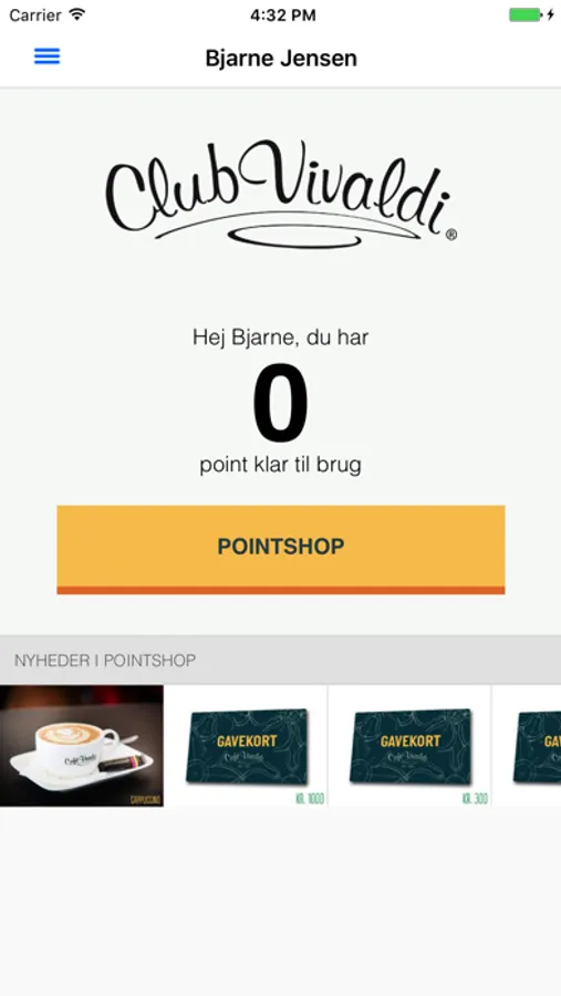 Cafe Vivaldi medlemsapp.