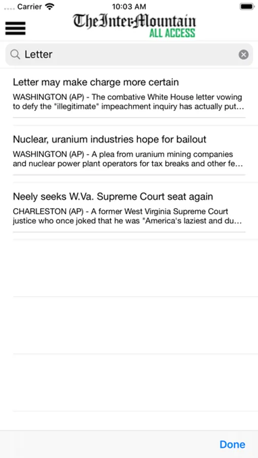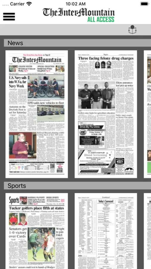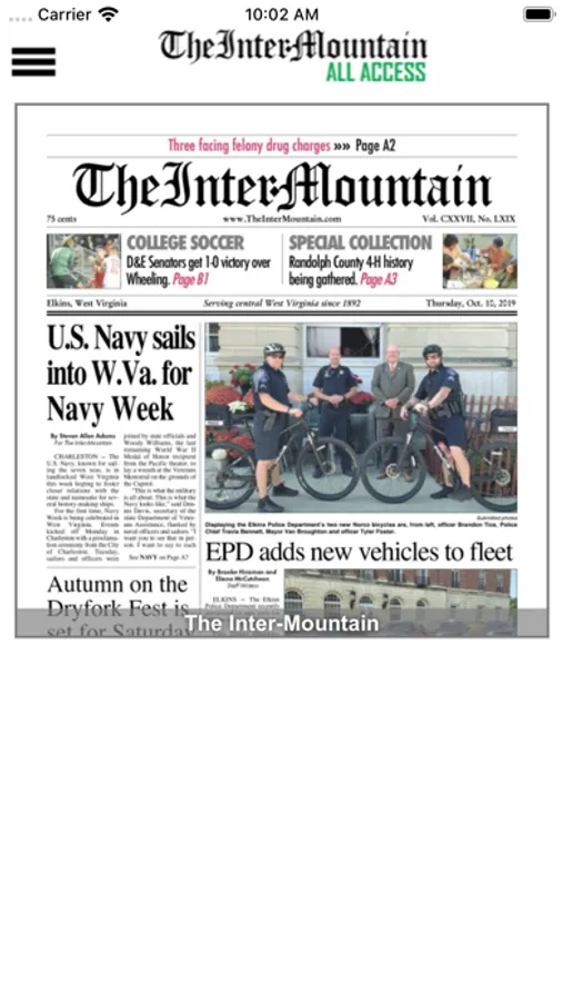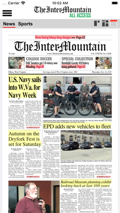 Stay on top of news from Elkins and surrounding areas by receiving the full print version of The Inter-Mountain on your iPhone or iPad. Every page of every edition is delivered to your device. The Inter-Mountain is the best source for local and national news, sports, weather and features in Elkins and Randolph, Barbour, Grant, Hardy, Lewis, Pendleton, Pocahontas, Tucker and Upshur counties. Download the app to view the printed pages of the newspaper or read headlines and stories along with related photos in a built-in story viewer.