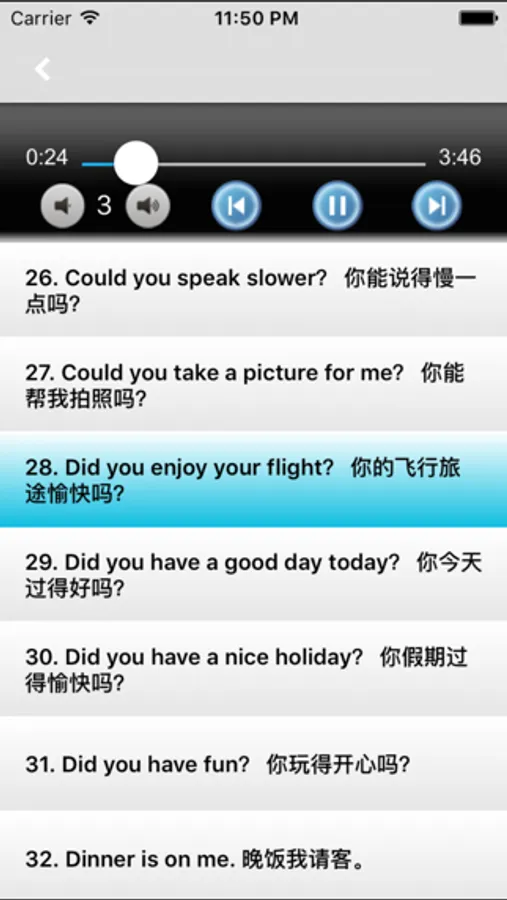 《李阳疯狂英语365句》应用精选了各种情景下的英语口语365句,并配有男声和女声朗读。