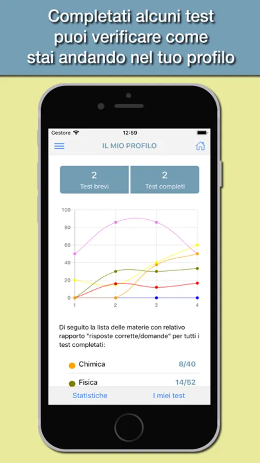 Once you have completed a series of short or complete tests, you can access your profile and visually check the progress of your preparation and deepen the topics of the tests by viewing the commented answers.