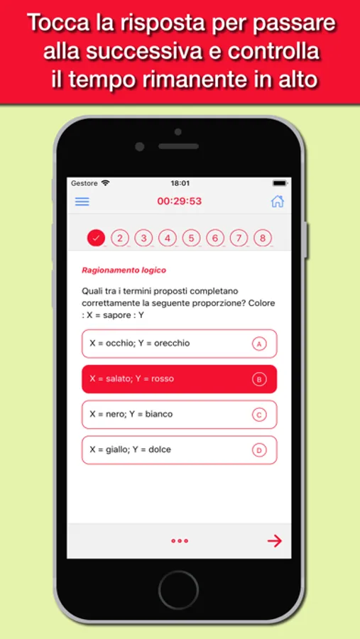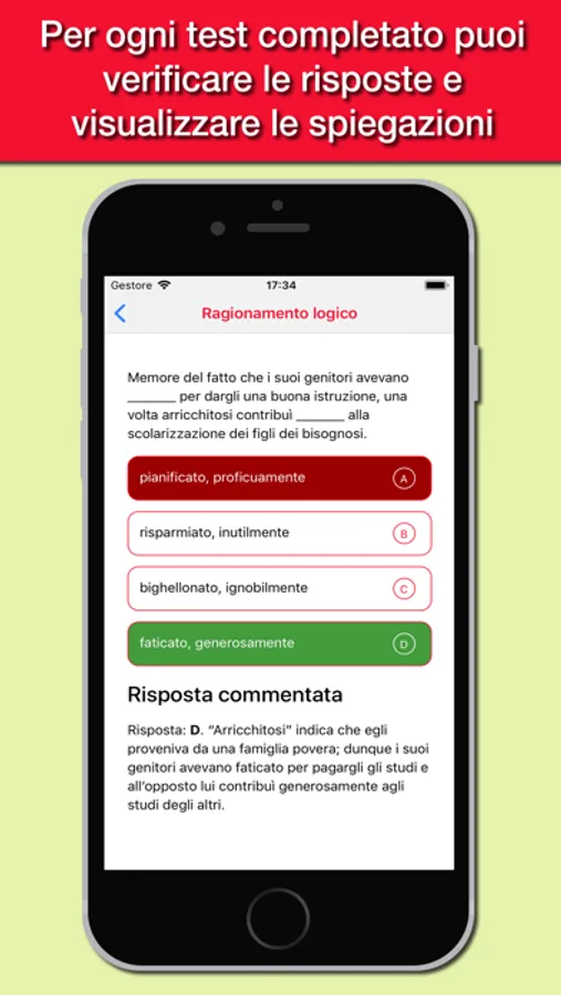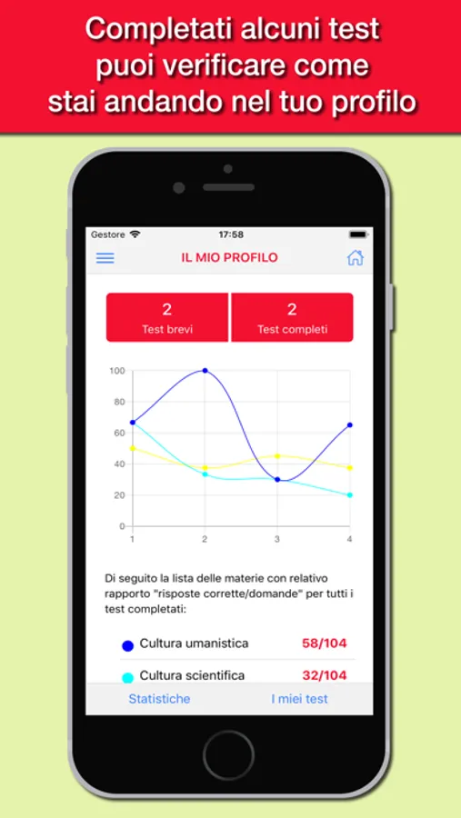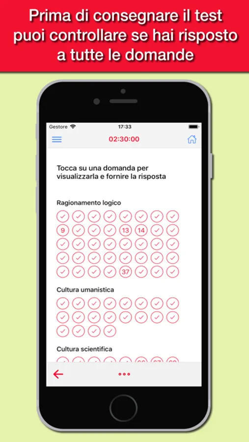 The app is designed to simulate as close as possible the test you actually have to deal with, with all the topics of the test: language skills, humanistic knowledge, scientific knowledge.