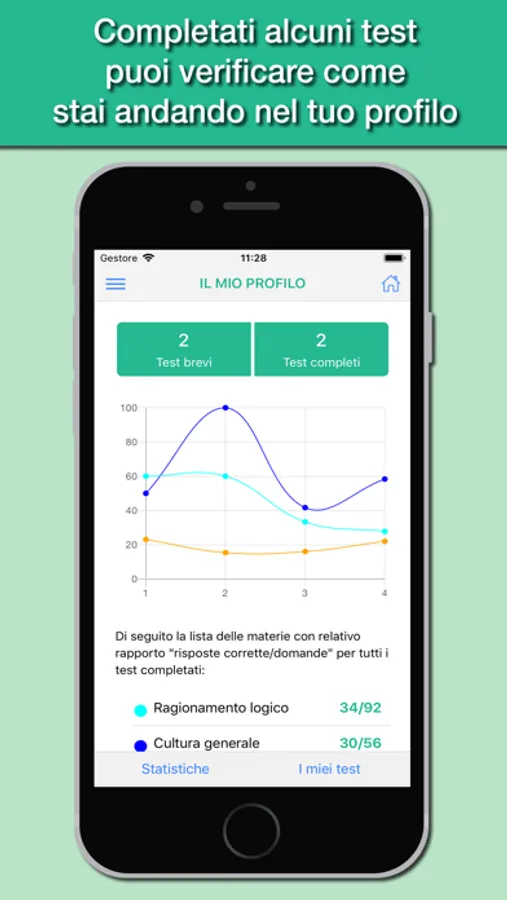 Once you have completed a series of short or complete tests, you can access your profile and visually check the progress of your preparation and deepen the topics of the tests by viewing the commented answers.