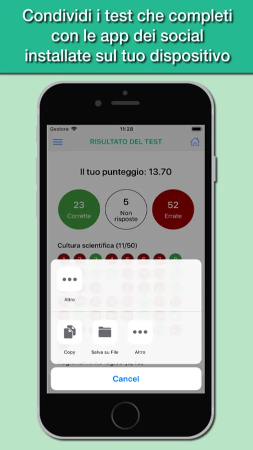This app is built on a database of 1000 questions with their corresponding annotated solutions, and enables you to generate an unlimited number of different tests and reach a better preparation. After downloading the app, you can simulate a full test of 80 questions, similar to the actual official test, or you can choose to check your preparation in a quicker way by completing short tests with 20 questions, in order to optimize your time. In both cases, you can pause the test and resume it later, you can submit it and check the solutions, or you can abandon it and start a new test.