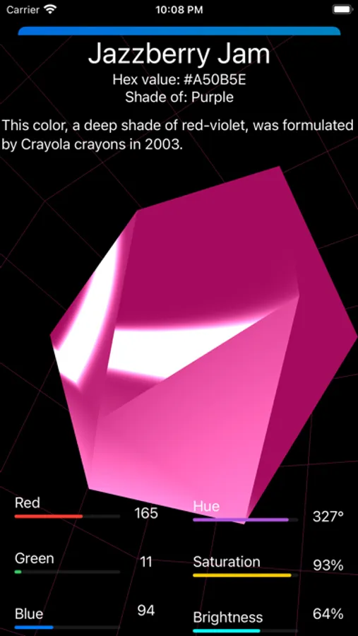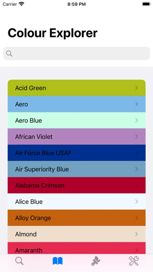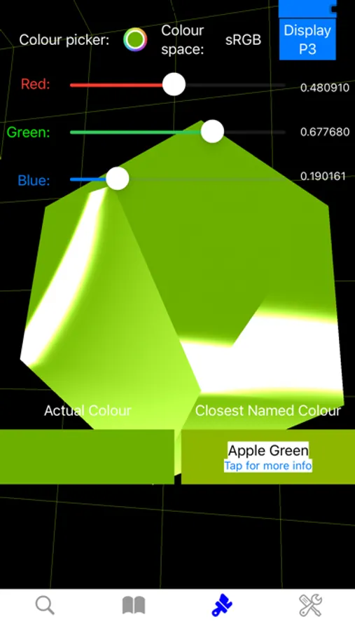 Also includes a colour explorer allowing the user to explore the database of colours and tapping on the colour will give a description and history of the colour and allow the user to see a full screen and 3D mapped uses of the colour.