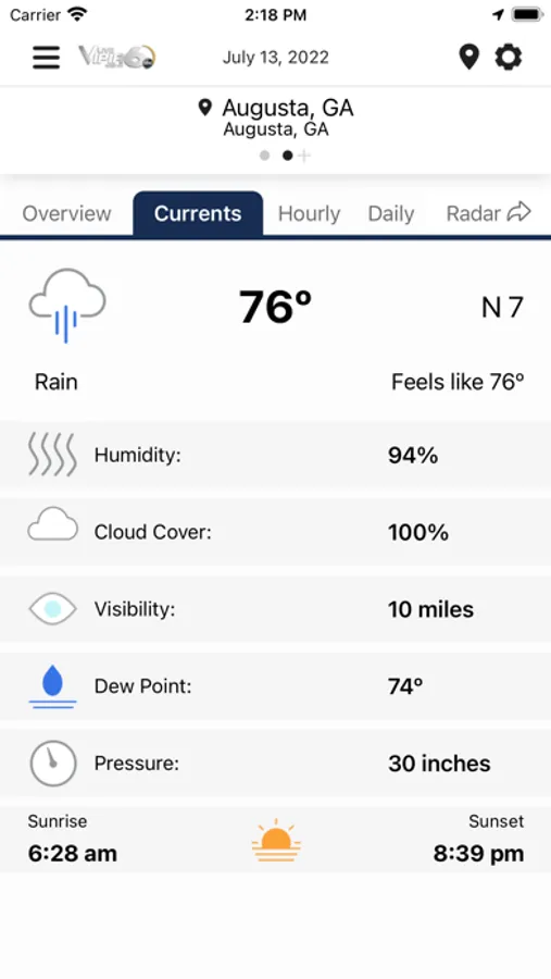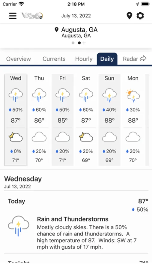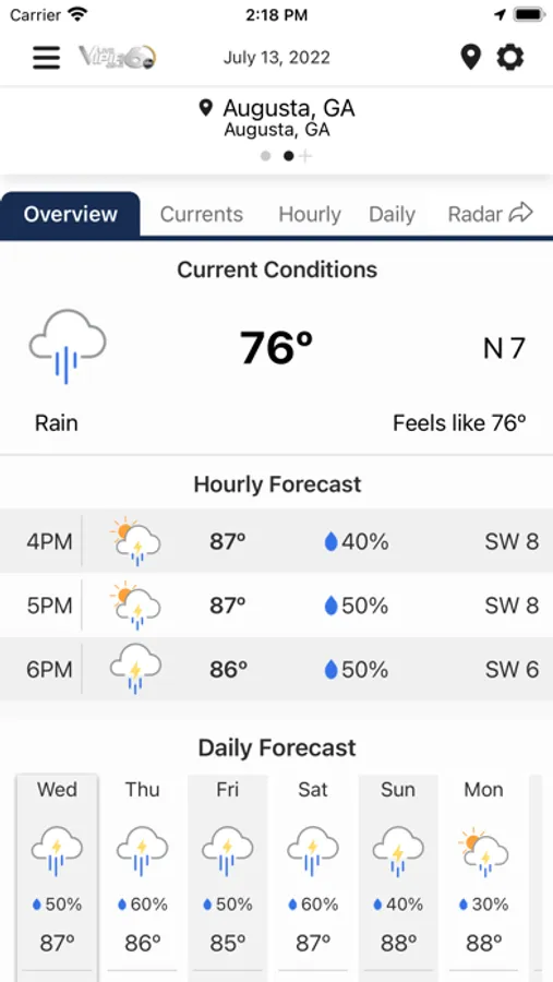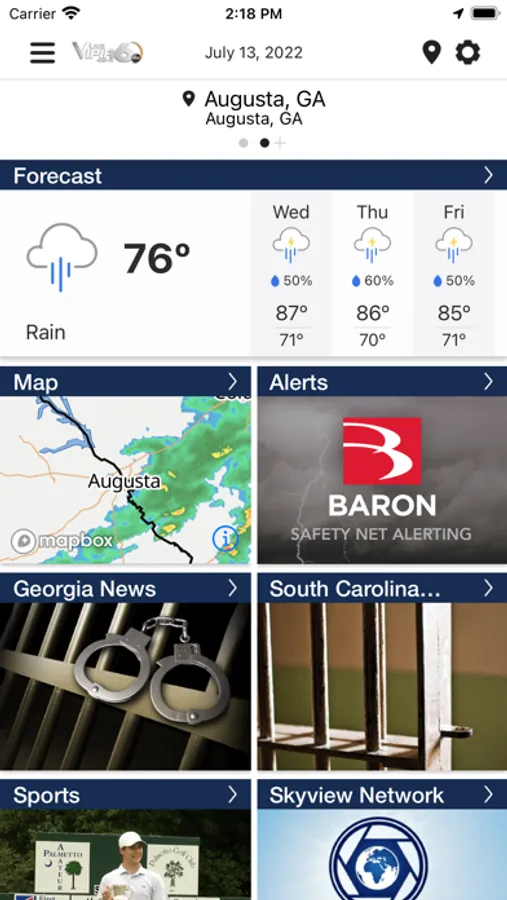 Weather Alerts: WJBF Viper 6 provides fully automated weather alerts right on your phone, simple to use and more specific than weather sirens, with a lead time of up to 15 minutes before the storm hits. You can set up for sixteen places to be monitored for severe weather, including your smart phone's current location, so you always know what's coming.