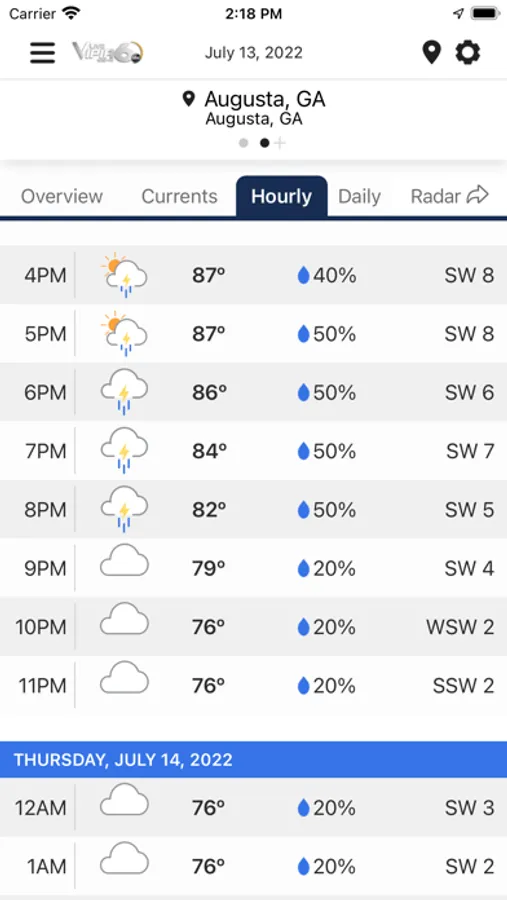 The WJBF Vipir 6 app is a daily weather resource for your smart phone, providing forecasts and current conditions like radar, satellite imagery, temperature and surface winds on a fast and fluid map. An easy-to-use slider lets you scan through the next 24 hours of forecasted conditions, so you can see what the weather will be like at times and locations important to you.