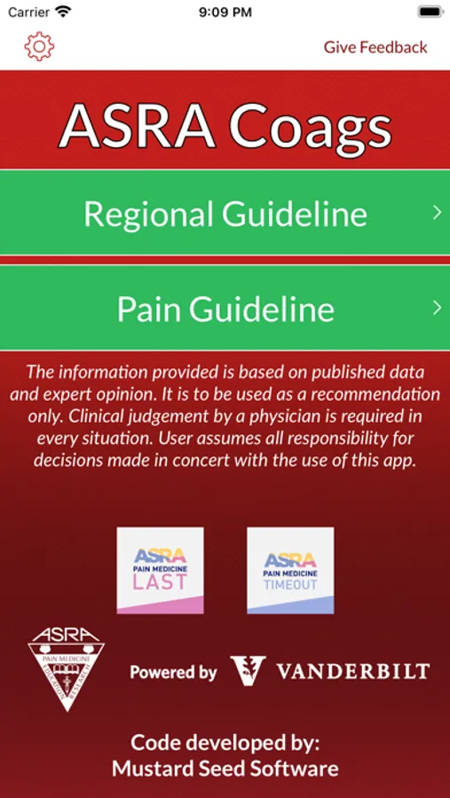 You have direct access to either the Regional guidelines or Pain guidelines in one app or you can choose either one as the default starting point if your practice is focused on a specific area.