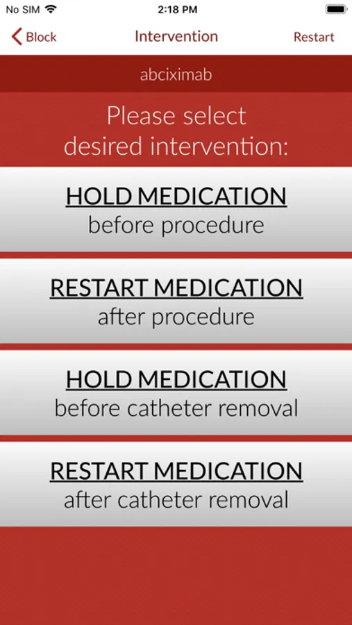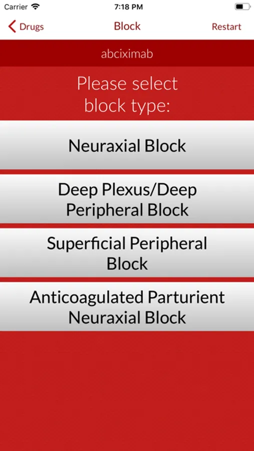 2. Get recommendations based on the block type (e.g. neuraxial, peripheral) and the intervention type (e.g. placing a block or removing a catheter)