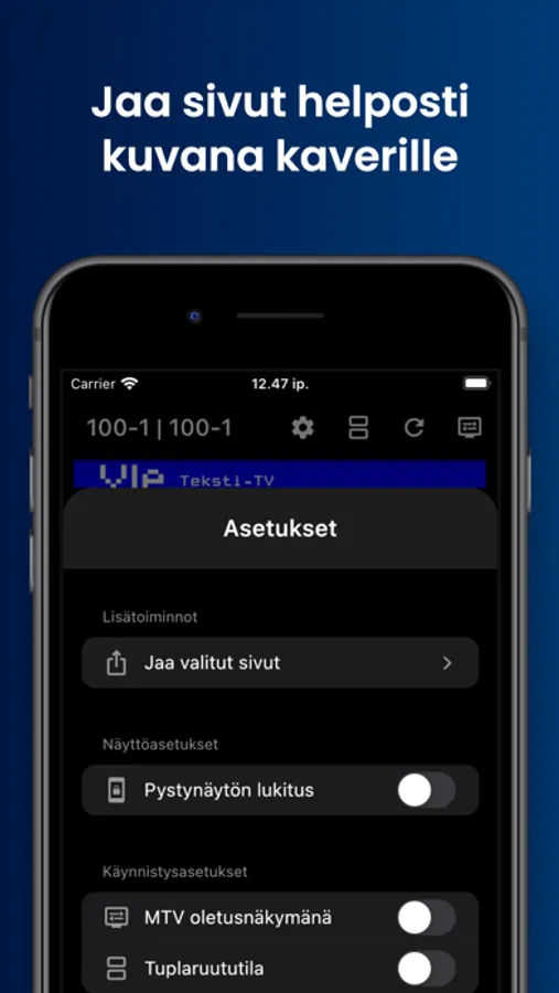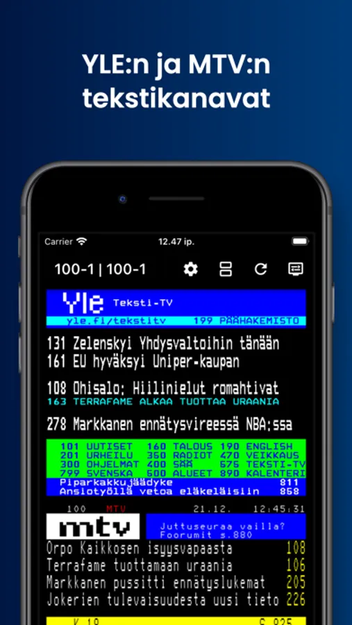 - Change teletext (YLE/MTV) from the button in the upper corner