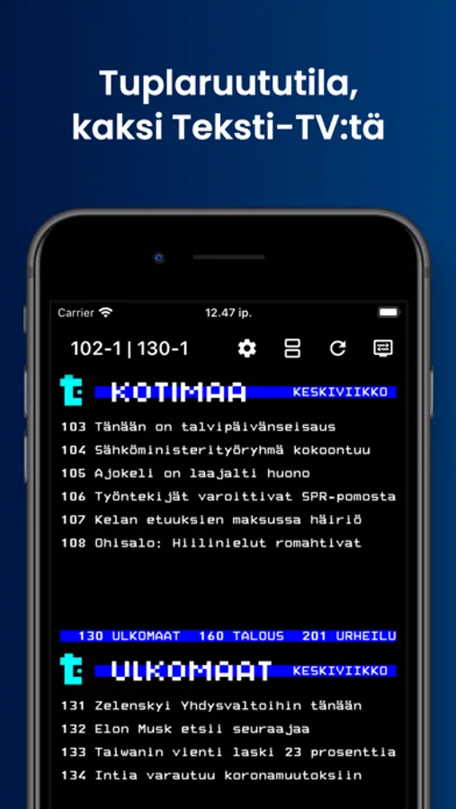 - Activate the mode of two teletexts with the "split" button in the upper corner