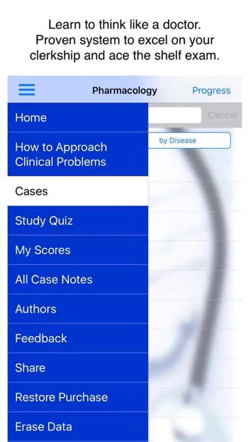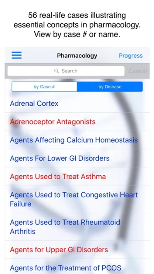 This application includes 1 case study from the 56 that are available with a subscription. The 56 high-yield cases in Case Files Pharmacology will help you excel on the clerkship and improve your shelf-exam score.