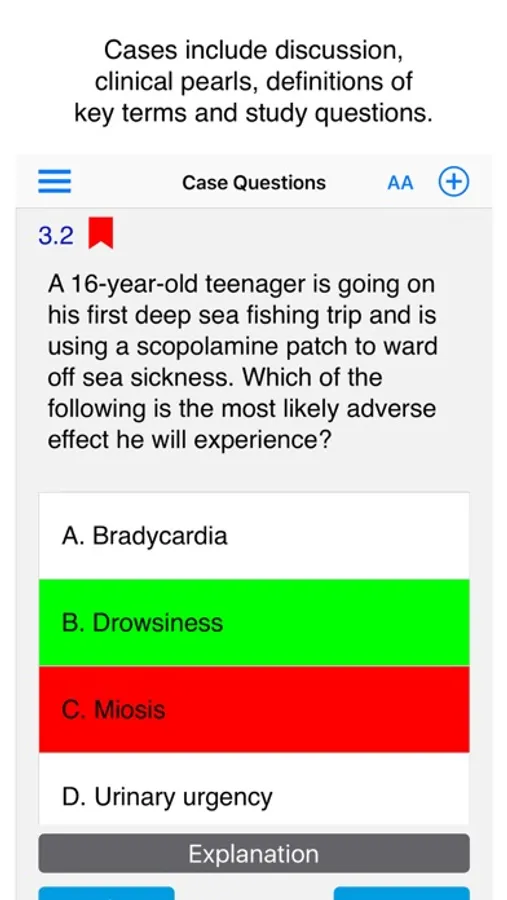 •Learn further from interactive questions at the end of each case, with explanations.