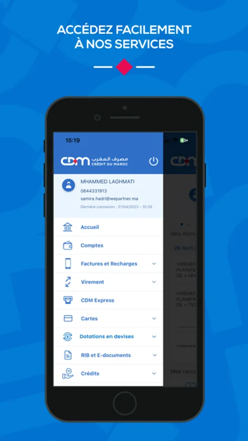 Pour toute demande d’information et/ou assistance, veuillez nous adresser un courriel à l’adresse : mycdm@cdm.ma ou contactez notre Centre Relation Client au 3232.