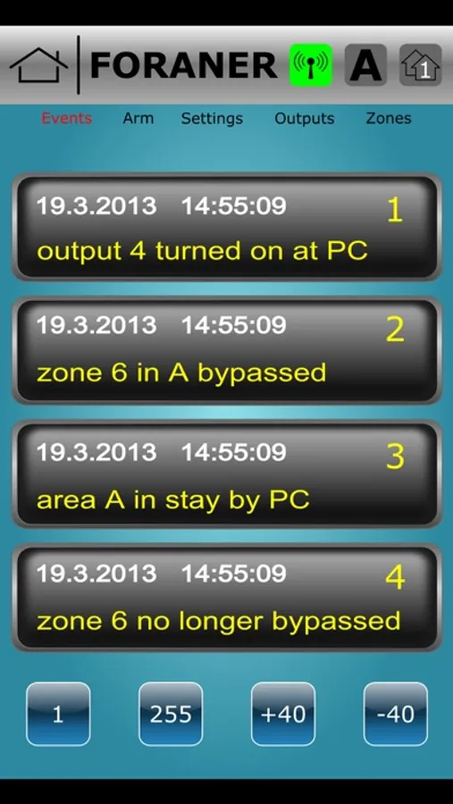Foraner is application for remote control of Crow Alarm System RUNNER8.
