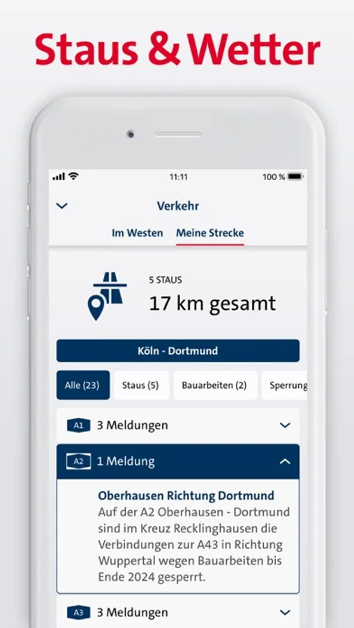 Mit unserer App fahrt Ihr am Stau vorbei. Seht alle Meldungen aus der WDR 2 Verkehrsredaktion oder lassen Euch nur die Staus auf Eurer Strecke anzeigen. Dazu gibt es das Wetter für alle Städte im Westen.