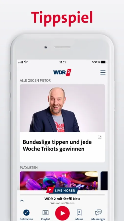 Auch das beliebte Fußball-Tippspiel "Alle gegen Pistor" habt Ihr mit der WDR 2 App immer dabei. Tippt, checkt alle Ergebnisse und verwaltet Eure Tipprunde.