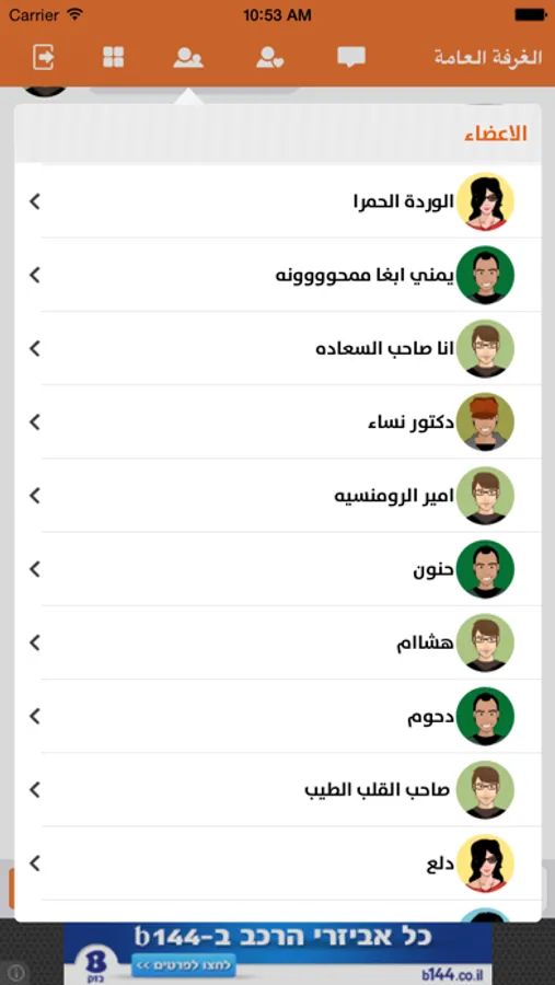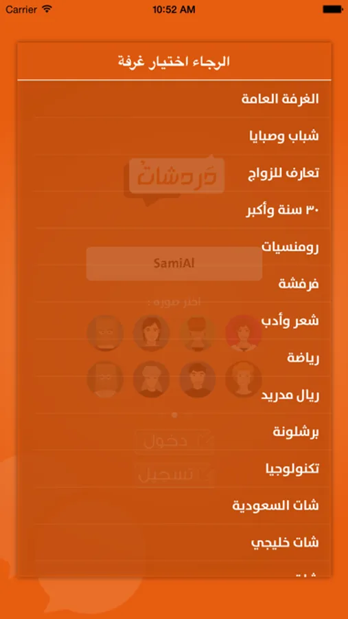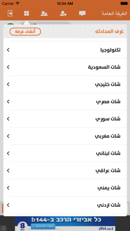 التطبيق يحتوي على غرف عامة للدردشة متل دردشة سعودية دردشة فلسطينية دردشة خليجية دردشة لبنانية دردشة مغاربية
