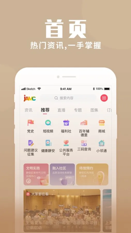 看新闻、听资讯、刷直播、在线预约、抽奖抢票……足不出户,晓知静安;一端在手,应有尽有。