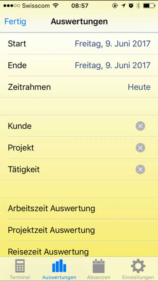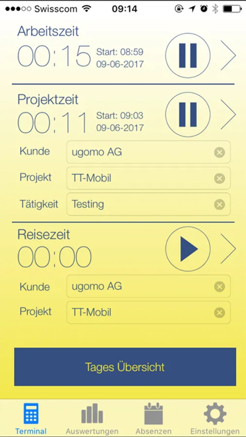 Die einfachste Art der Arbeits- und Projekt-Zeiterfassung. Dank einer einfachen Benutzeroberfläche und intuitiver Navigation ist die Zeiterfassung durch die Mitarbeitenden rasch und mobil erledigt.