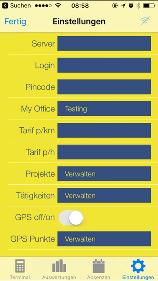 Die App wird mit der TimeTools-Software verbunden und die Daten werden online zwischen App und Software gesendet.
