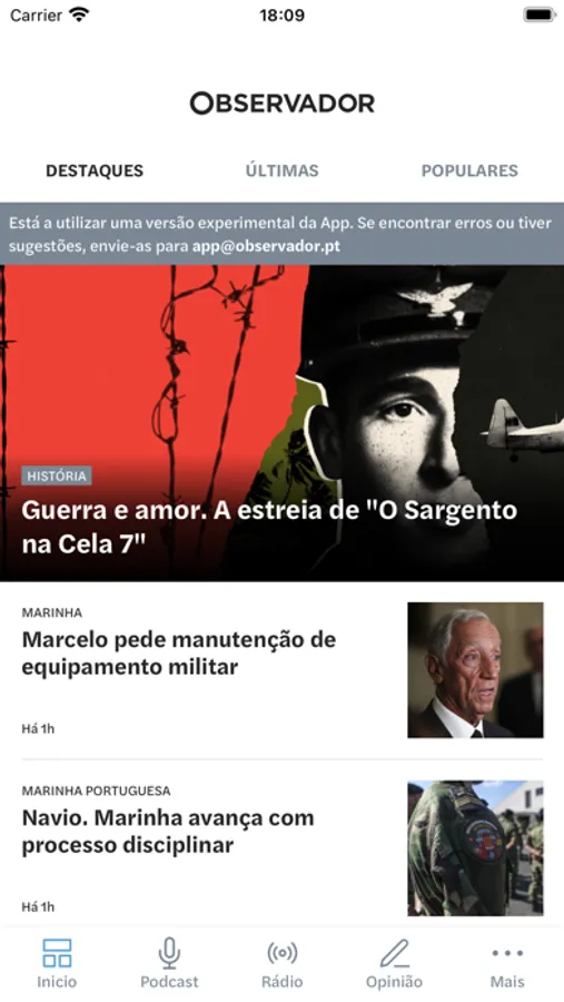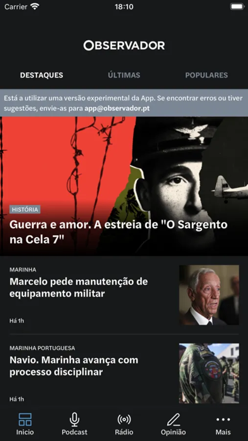 Encontre na app Observador o melhor conteúdo da atualidade e não perca nenhuma atualização sobre o que se passa no país e no mundo, com as notificações push. Acompanhe, em direto, a emissão da Rádio Observador, encontre todos os episódios de podcasts e conteúdos vídeo.