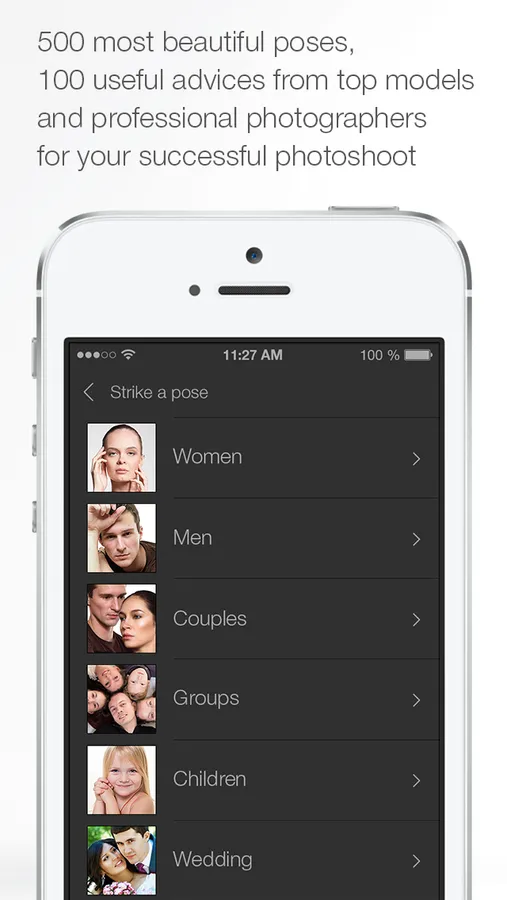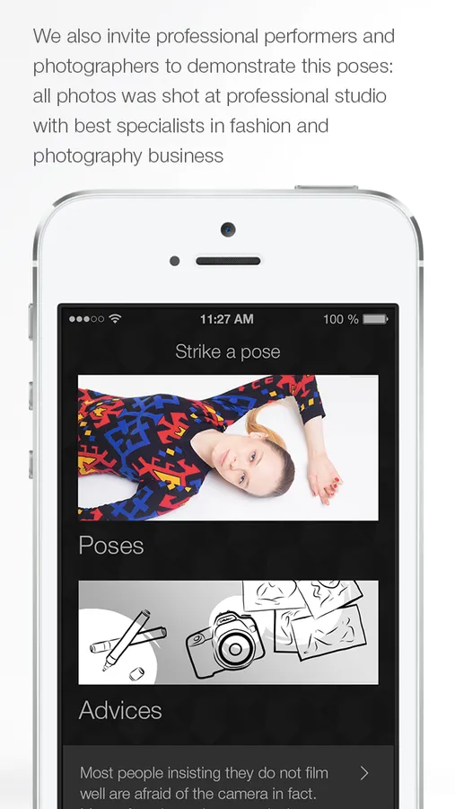 In this app you also find more then 100 tips and tricks for inspirational work for photographer and model.
