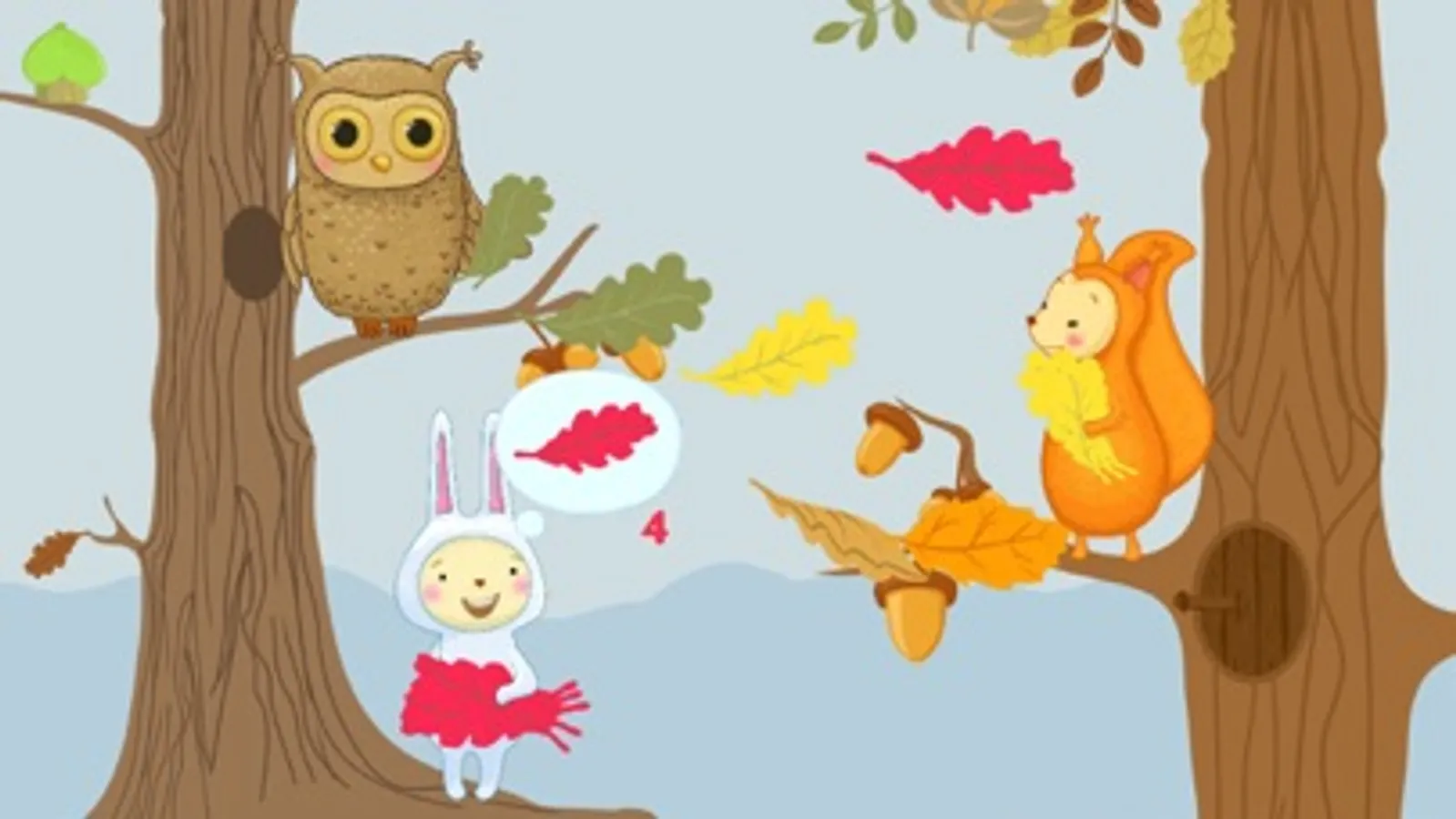 6. SQUIRREL: help the squirrels to gather red, orange and yellow leaves in the baskets.