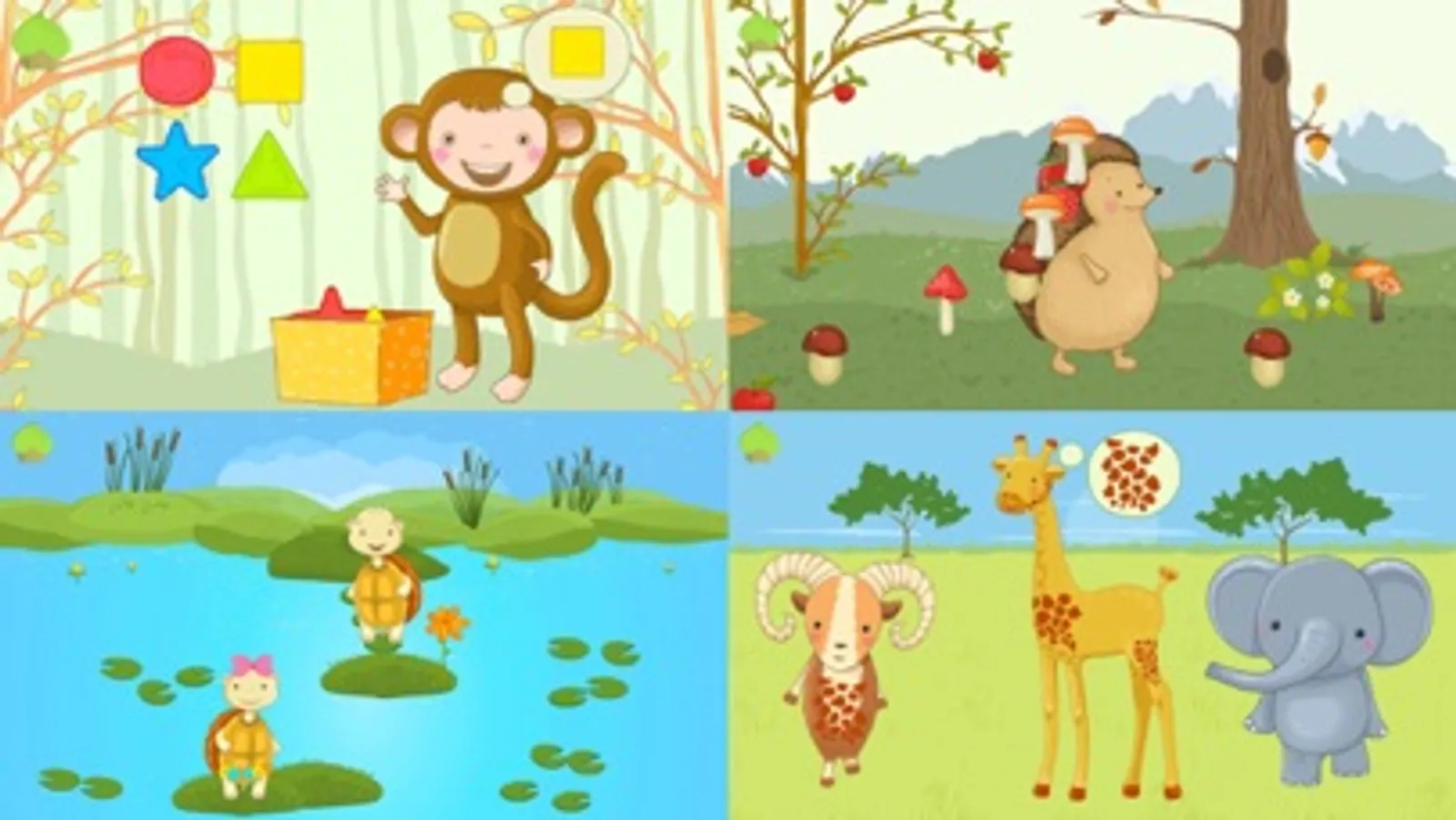 Funny animated animals will teach your child in a playful way! The game develops logic, memory, color perception, and introduces your child to the world of animals.