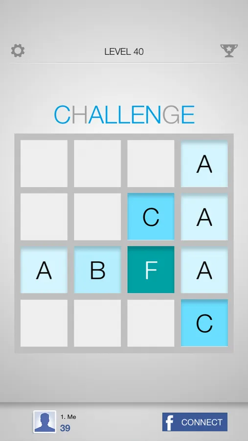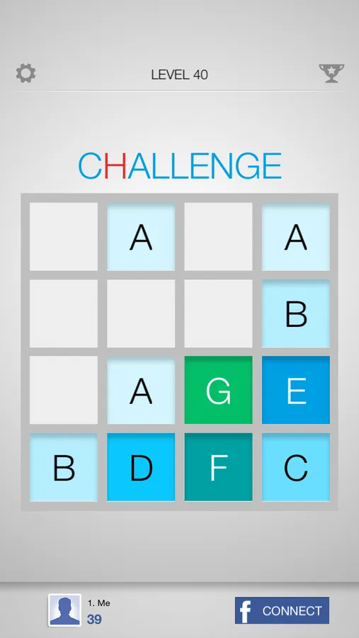 Swipe (Up, Down, Left, Right) to move the tiles. When two tiles with the same letter touch, they merge into new one. Collect letters to fill words.