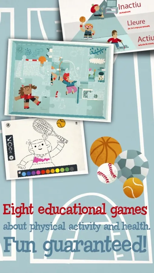 • Educational games on the importance of physical activity, revised by a medical professional, for children between the ages of 2 and 8 years, and the rest of the family.