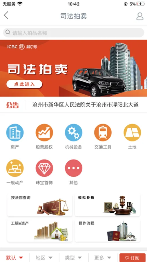 本软件是中国工商银行为客户打造的公正、专业、高效、省心的司法拍卖平台,该平台已加入最高人民法院司法拍卖网络服务提供者名单库。