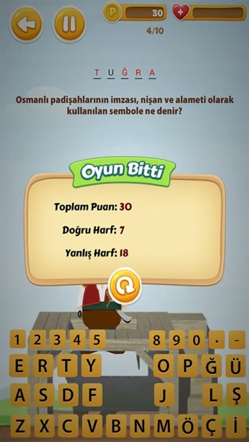 * Harfleri tahmin et, kelimeyi tamamla. Tamamlarken öğren. Yeniçeriyi asılmaktan kurtar. Osmanlı tarihi hakkında bilgi ni tazele.