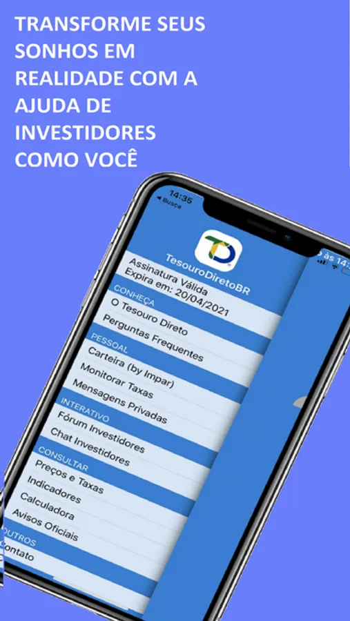 Transforme seus sonhos em realidade. Com a comunidade do TesouroDiretoBR você poderá desenvolver seu conhecimento sobre investimentos, seja ele básico, mediano ou avançado. São pessoas como você e que não estão aqui para vender nenhum produto, nem ganhar com isso.