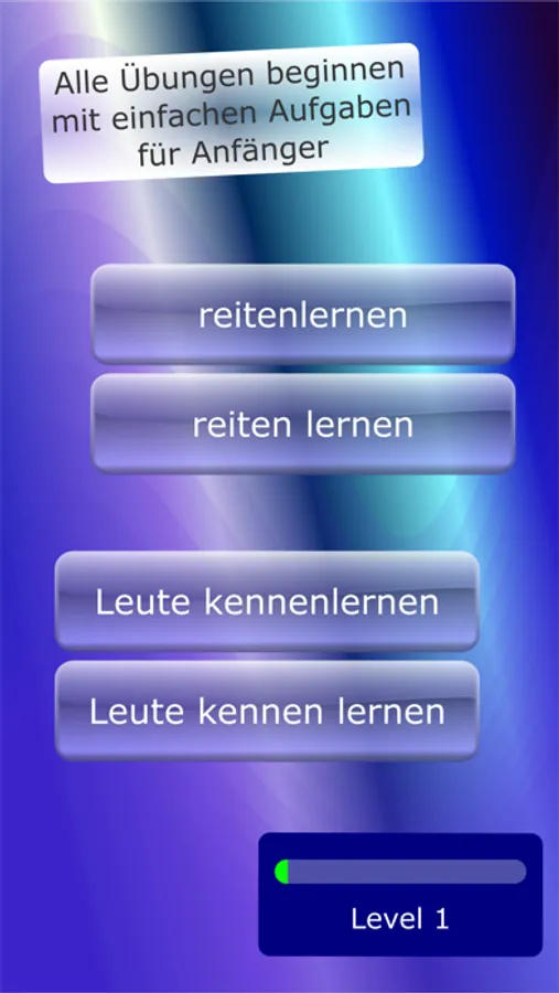 Damit das Üben ein Element von Spannung erhält, arbeitet der Benutzer sich vom Anfängerlevel auf immer höhere Stufen vor. Der Trainer hat 50 Levels, die zunehmend schwierig zu erklimmen sind.