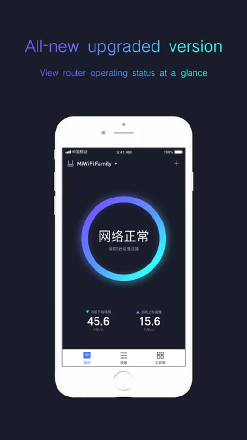 Version 5.0 of the Mi Wi-Fi app is now available! The new version delivers a smarter and more intuitive experience.